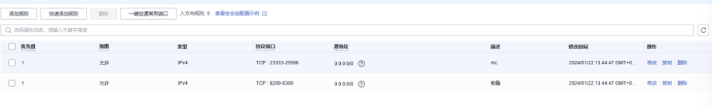 当你有了服务器后,记得把防火墙安全策略中23333,24444,25565,8211几个端口开放