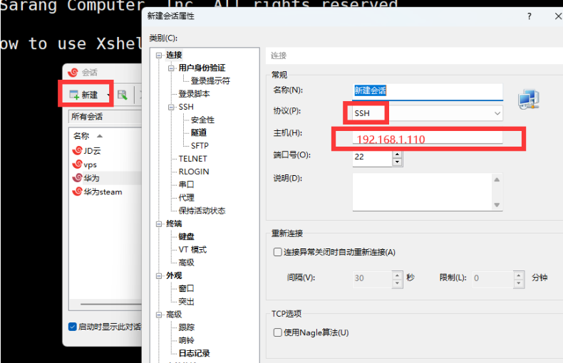 进去后新建,名称随便,协议默认SSH,主机就是你服务器公网IP