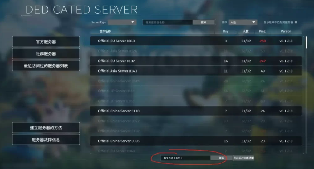 在图下位置输入你的服务器IP地址+端口号8211